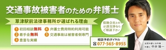 滋賀県の弁護士では最も早い時期から、交通事故被害者の初回相談を無料、示談交渉や訴訟の着手金を無料で行っています。